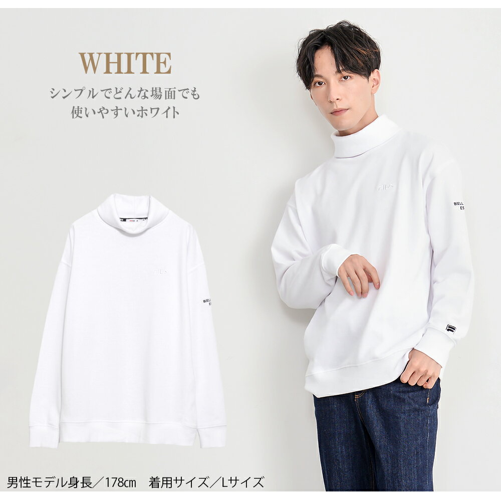 【ポイント5倍】 FILA フィラ ハイネック トレーナー スウェット メンズ レディース ユニセックス モックネック おしゃれ 長袖 スポーツブランド ペアコーデ 春 秋 冬 トップス 部屋着 ゆったり あす楽 ロゴ ワンポイント シンプル ビッグシルエット 白 黒 ベージュ ギフト
