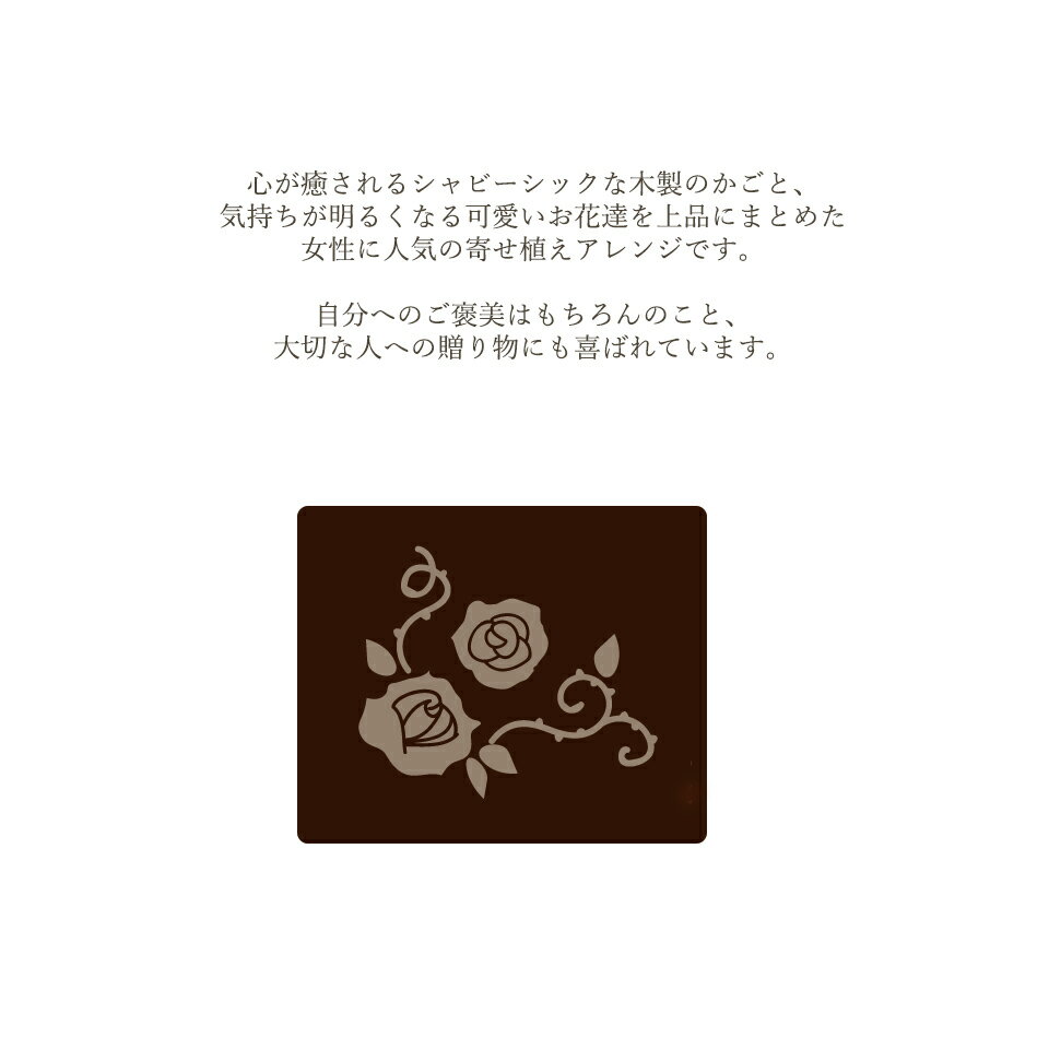 【材料・材質について】 カゴ(器)木製(シャビー⾵) ⽤⼟ 寄せ植え⽤87naviオリジナルブレンド(⿊⼟・⾚⽟⼟・パーライト・バーミキューライト・ココピート・ピートモス他) 敷き材 ココピートファイバー 元肥 ロングラン肥料+短期肥料のダブル配合 花材 ⽣花市場直送の季節の花苗× 5〜6種※お花の種類によって数がかわります。