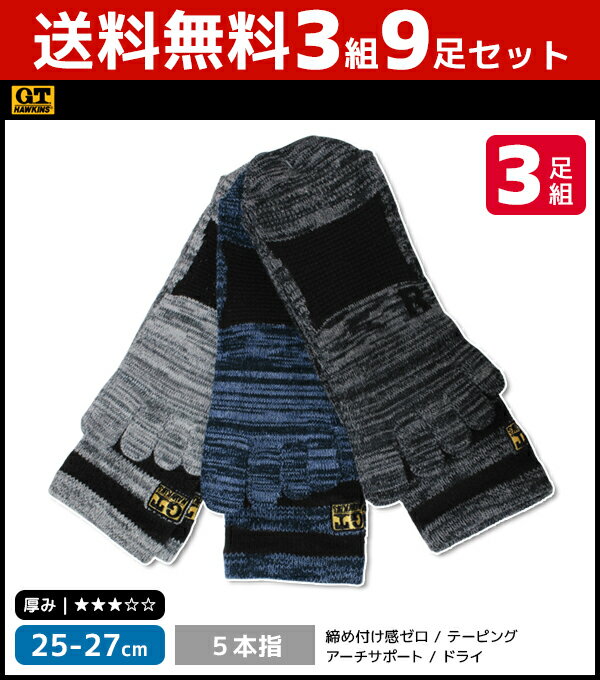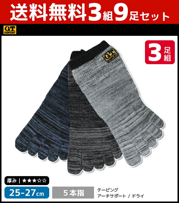 送料無料3組セット 計9足 G.T.HAWKINS ホーキンス 5本指 メンズソックス 3足組 グンゼ GUNZE | メンズ 男性 紳士 くつした くつ下 ソックス ブランド 5本指ソックス 5本指靴下 五本指 五本指ソックス 五本指靴下 スポーツ アウトドア 登山 丈夫 カジュアル おしゃれ 紳士靴下