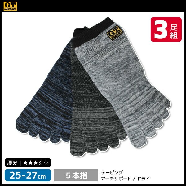 G.T.HAWKINS ホーキンス 5本指 メンズソックス 3足組 グンゼ GUNZE | メンズ 男性 紳士 くつした くつ下 ソックス ブランド 5本指ソックス 5本指靴下 五本指 五本指ソックス 五本指靴下 スポーツ ショート スニーカー アウトドア 登山 丈夫 カジュアル おしゃれ 紳士靴下