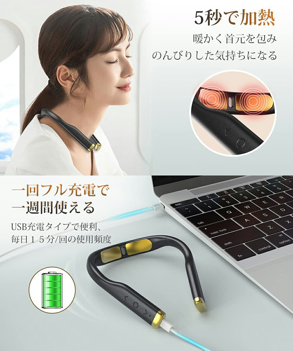 首マッサージャー 温熱 EMS 音声ガイダンス ネックマッサージャー 首 肩 腰 肩こり 超軽量 超静音 ストレス解消 疲労回復 血行促進 USB充電式 快眠 誕生日 結婚祝い クリスマス 贈り物