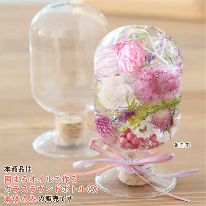 本商品は、コルク付・ガラスラウンドボトル(S)本体のみの販売です(固まるオイル、花材、作り方レシピの付属はありません)。