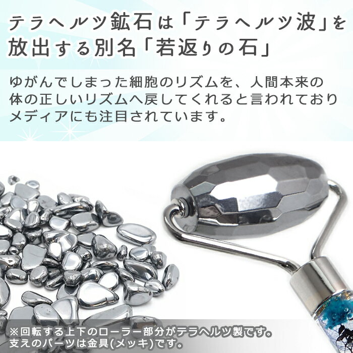 【商品仕様】 ・全長/約15cm ・持ち手軸径/約1.2cm ・天然石ローラー(テラヘルツ)/(大)約4cm×2cm、(小)約2.5cm×1.8cm ※多少の個体差がございます。