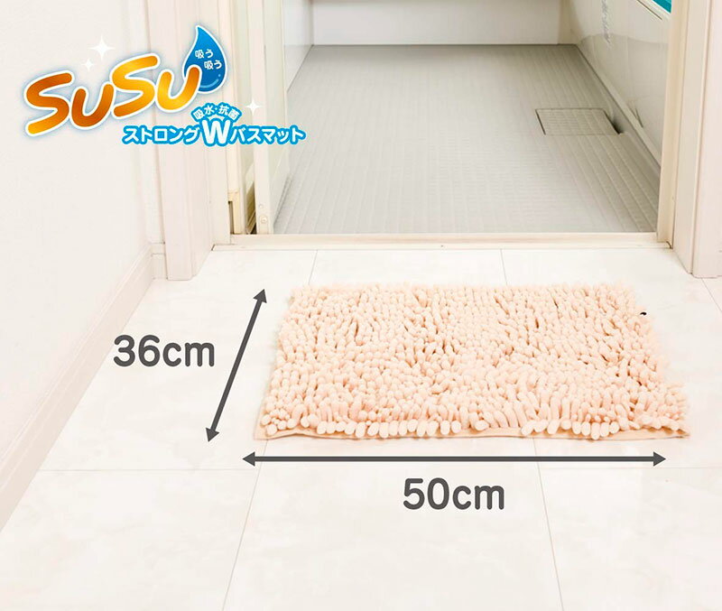 特許取得の超吸水モールで足元サラサラ!柔らか!究極のふわもこ触感、マイクロファイバーバスマット 36×50cm。