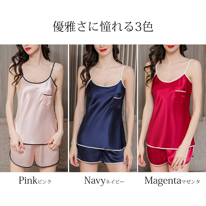 ◆極上の寝心地のデザイン 涼しくて可愛いキャミソールとパンツの上下2点セットのデザインが高級感あり、美足が出して色っぽく見えます。