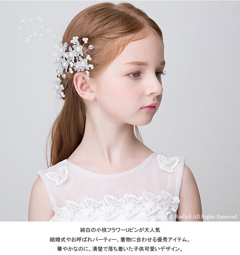 商品詳細 商品名:純白の小枝フラワーUピン4本セット カラー:ホワイト サイズ:縦約10cm×横7cm 特徴など: マットなお花の質感がノーブルな印象のフラワーUピンは和装・洋装問わず使える定番アイテム。