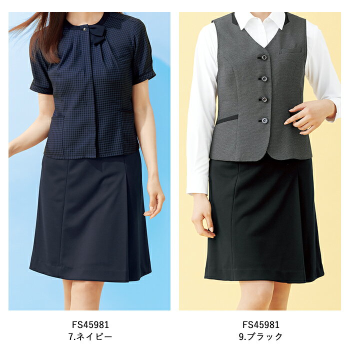 事務服 スカート レディース 制服 nuovo 秋冬 春 FOLK 後ゴム 脇ゴム 片プリーツ ニットスカート 黒 ブラック ネイビー 医療事務 受付 接客 冠婚葬祭 セレモニー クリニック オフィス スーツ ストレッチ 大きいサイズ おうちで洗える 抗菌 防臭【送料無料】