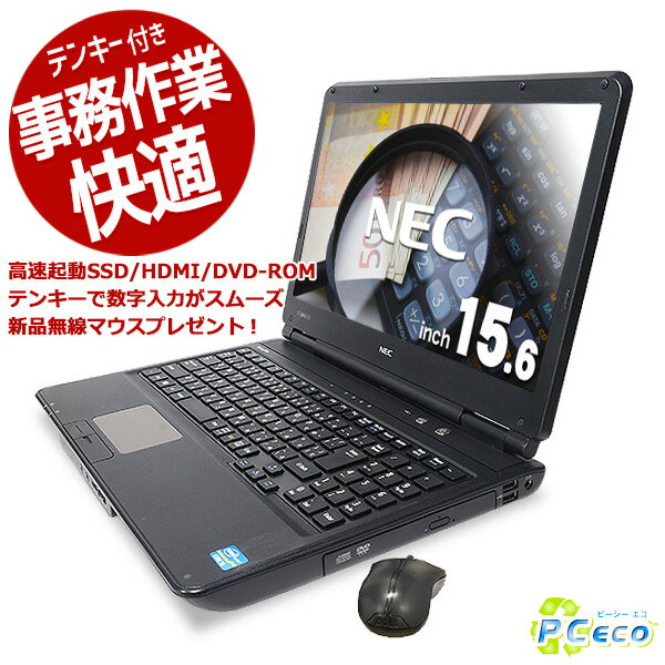ポイント2倍! ノートパソコン 中古 Office付き 無線マウス SSD テンキー 訳あり Windows10 Pro NEC VersaPro VK26T/X-M Corei5 4GBメモリ 15.6型 中古パソコン 中古ノートパソコン