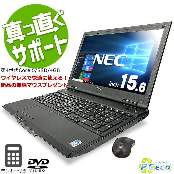 【中古】整備済み品 NEC ノートPC VK25 Win 10Pro 15.6型 第四世代 Core i5-43000M DVD 8GB 256 SSD 中古パソコン ノートパソコン テレワーク対応 ワイヤレスマウス付き 送料無料