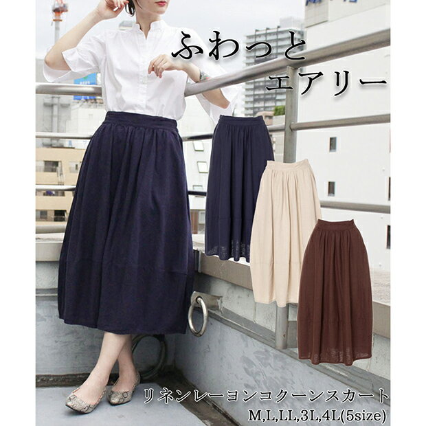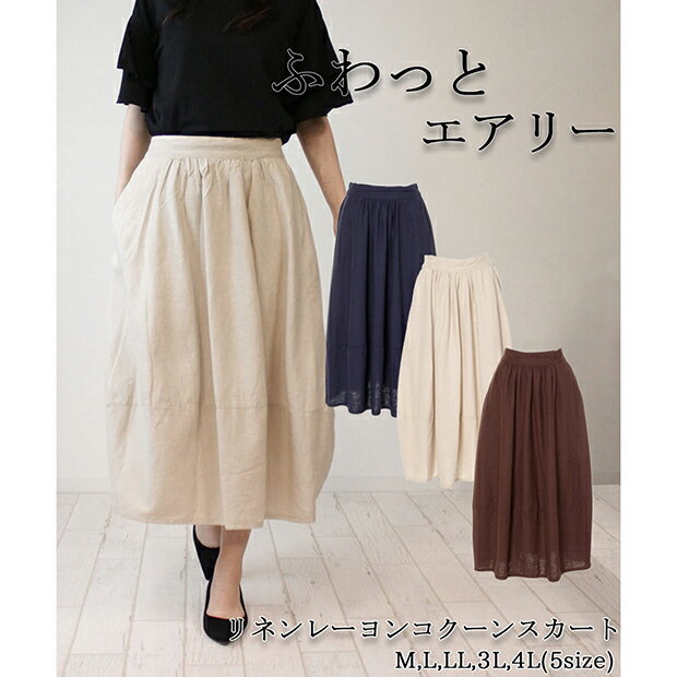 【送料無料】 リネン ふんわり コクーン スカート コクーンスカート バルーンスカート リネンスカート ボトムス レディース ゆるシルエット ウエストゴム 楽ちん 高見え きれいめ カジュアル クラシカル 清楚 脚長効果 美脚効果 麻 大きいサイズ 春 夏 秋 冬 オールシーズン