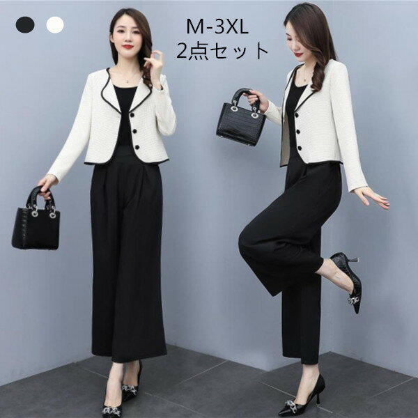 スーツ セットアップ パンツ フォーマル 入学式 卒園式 入園式 卒業式 母 フォーマルスーツ セレモニー ワイドパンツ 7分丈 ノーカラージャケット 結婚式 通勤 オフィス 春 秋 冬 30代 40代 50代 大きいサイズ
