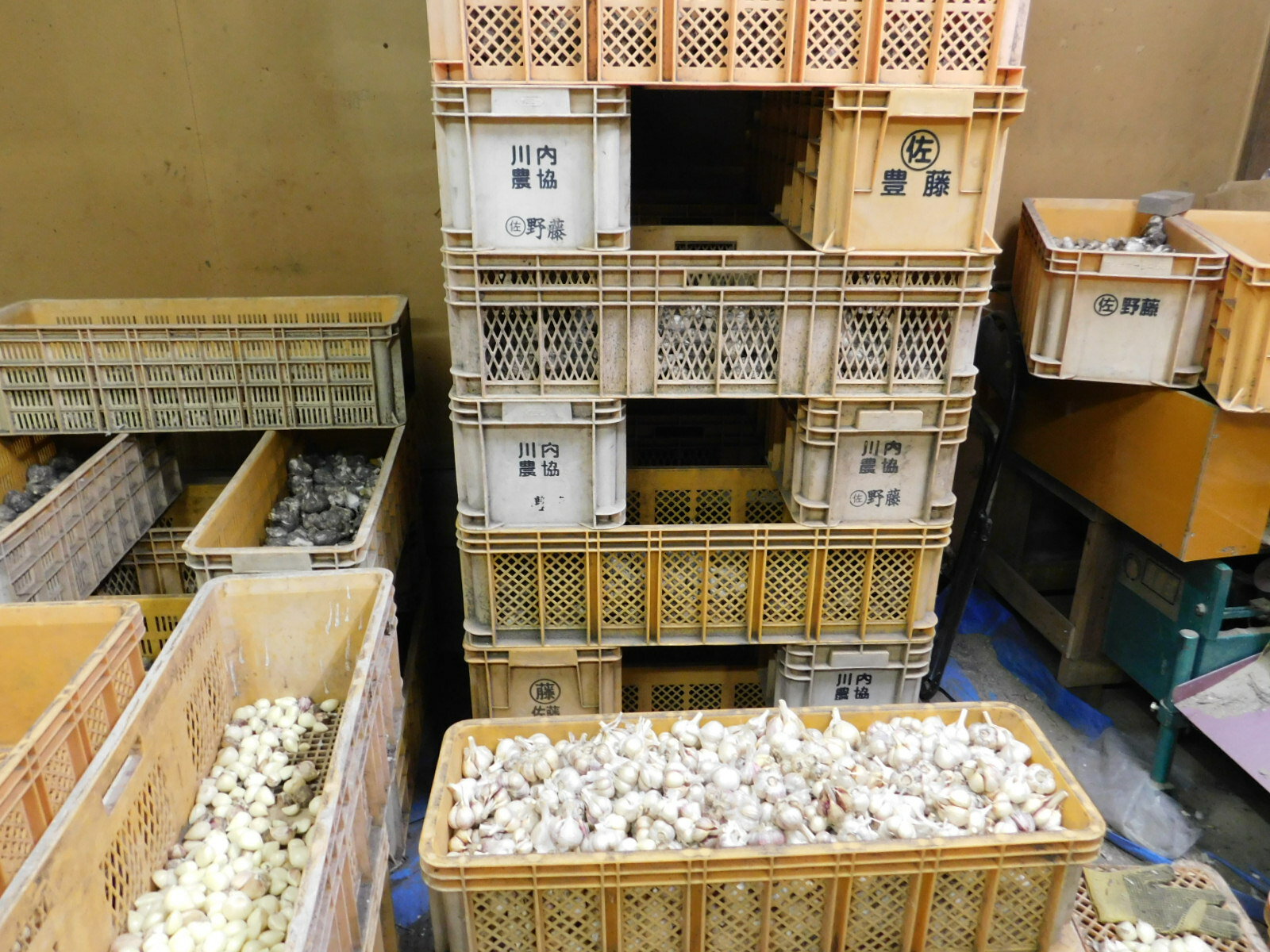 収穫したにんにくの大きい方から3割を次の種にんにくにするので今年お届けできるにんにくのサイズは1kgで30玉前後になるのではないかと予想しております。