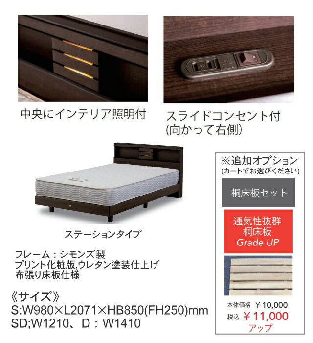 シモンズベッド特別限定商品クルス2 シェルフ 棚付き ステーションタイプ セミダブルベッド ★
