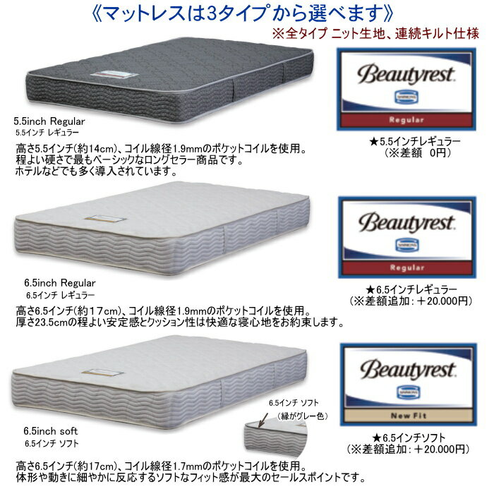 5.5インチレギュラー ポケットコイルマットレス仕様 ※6.5インチレギュラーに差額+20.000円(税込)で変更できます。