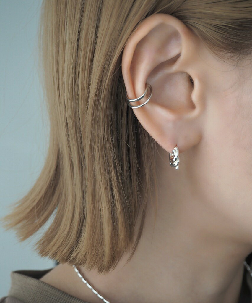 silver925 2連デザインミニフープイヤーカフ 片耳/イマノエル(Immanoel)