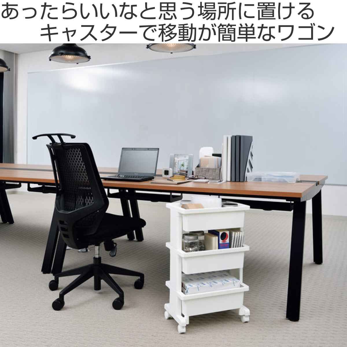 おすすめポイント手軽に移動できるワゴンタイプの収納キッチンからダイニング、リビングと必要な場所に移動させて使える収納ワゴンです。