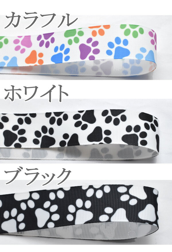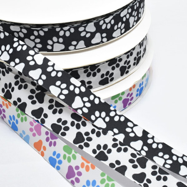 キュートな犬の手形がぎゅっとプリントされた、25mm幅ハンドメイド手芸用リボンです。