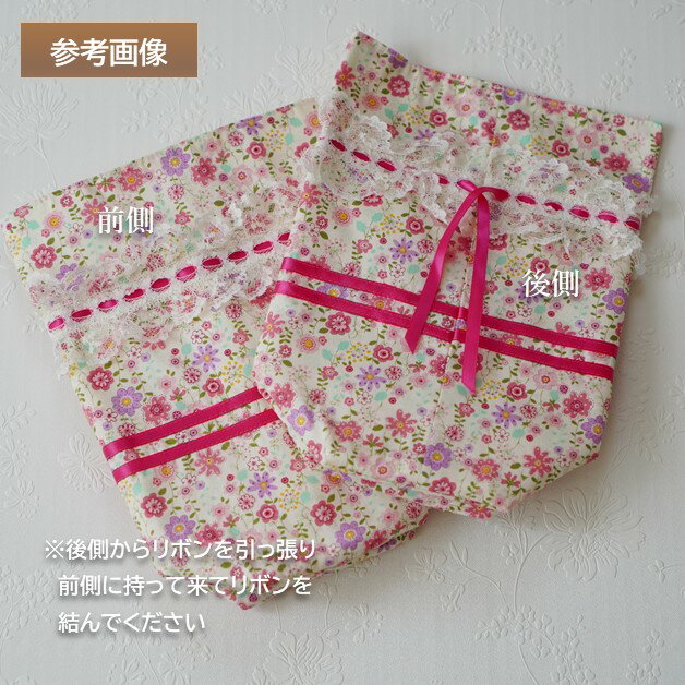 サテンリボンで結ぶ巾着タイプです。