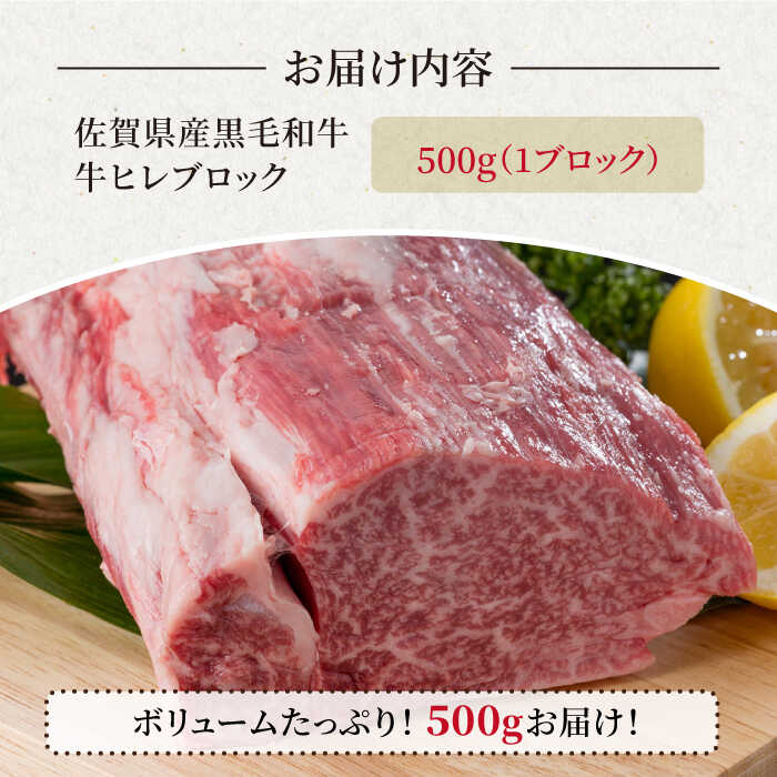 【ふるさと納税】佐賀県産 黒毛和牛 贅沢 ヒレ ブロック 500g 【株式会社いろは精肉店】お肉 肉 牛ヒレ ヒレ肉 フィレ ステーキ BBQ 焼き肉 牛肉 冷凍 和牛 [IAG036]