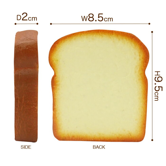 食パンスクイーズ(サモメロン)サイズ 約:縦9.5cm 横8.5cm 幅2cm ※表記サイズは実寸表記ですが、素材の伸縮性、計測の仕方により若干の差がある場合がございます。
