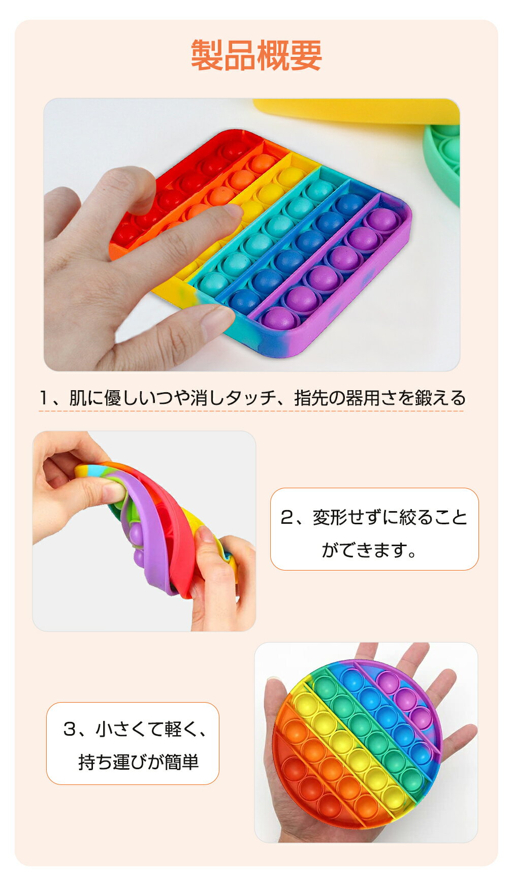 ↓ 関連商品はこちら ↓ フライングボール 360°回転 選べる2タイプ 魔法の杖 LEDブーメランスピナー 大きい サイズ16タイプ プッシュポップ テトリス 27個入り DIY組み立て ショルダーバッグ 人気商品を見る → この商品を見ている人はこちらもチェック 家具 一覧はこちら → 商品名 ・プッシュポップ 知育 玩具 カラー ・マルチカラー デザイン ・丸形、四角形、八角形、猫形、ユニコーン形、ハート形、ティラノサウルス形、宇宙人形 素材 ・シリコン 対象年齢 ・全年齢 生産国 ・中国 ※注意事項 ※撮影の為、画質等の関係上、色などが実際の商品と若干違ってしまうこともあるかもしれませんがご理解のほどご入札ください。