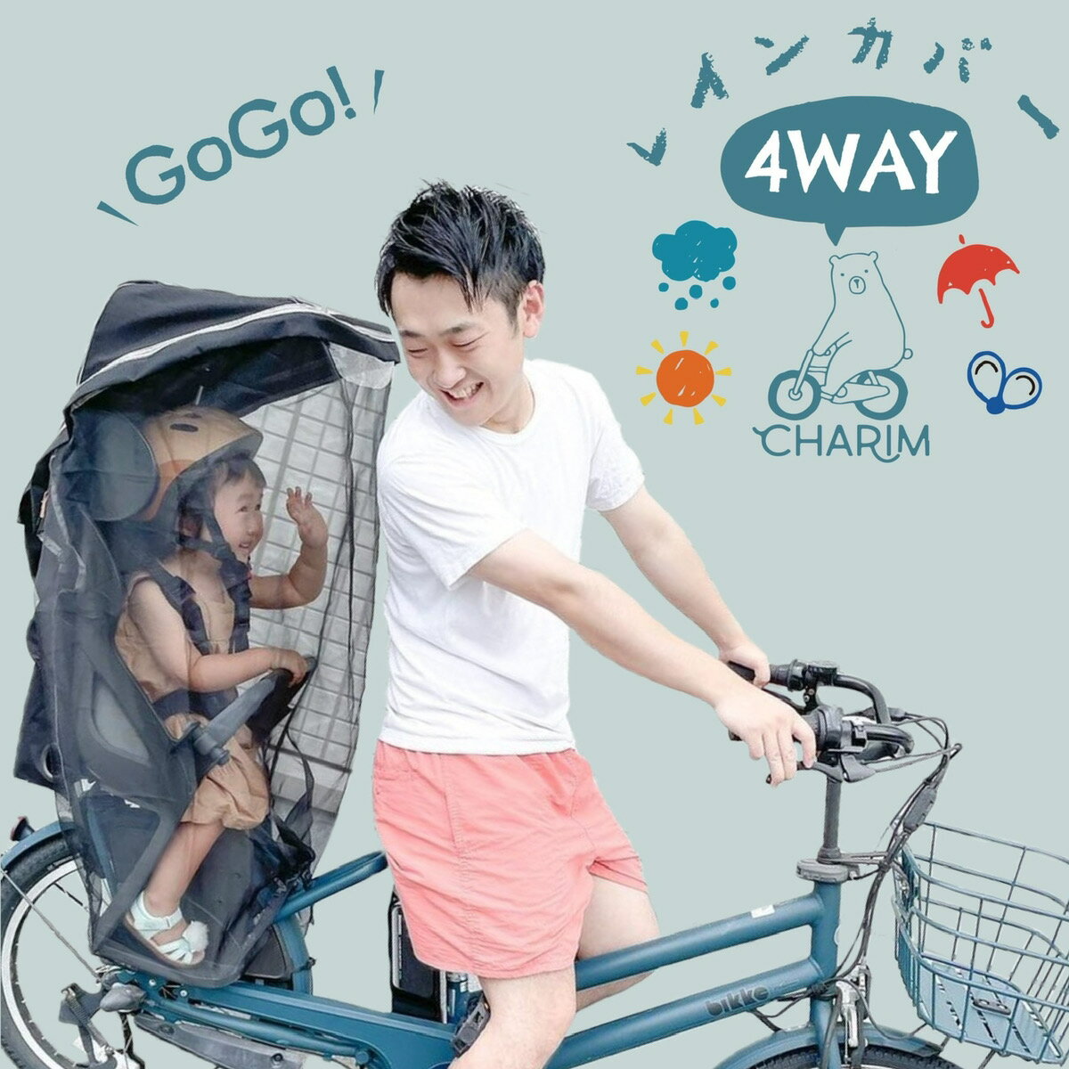 360度日差しをカットする最強のサンシェード!自転車 子供乗せ レインカバー 後ろ チャイルドシート 4WAY 広びろ 頑丈 防寒 防風 防水 日除け 虫除け付き CHARIM【後ろ用】【リア用】【雨】【キッズ】【サンシェード】【子ども】【子供】