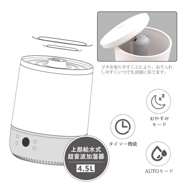 スチーム式とは違いミストが熱くならないので、小さなお子様やペットがいるご家庭でも安心 AUTOモードで安定した加湿が可能です。