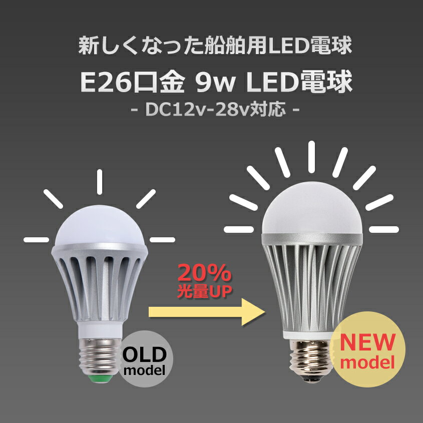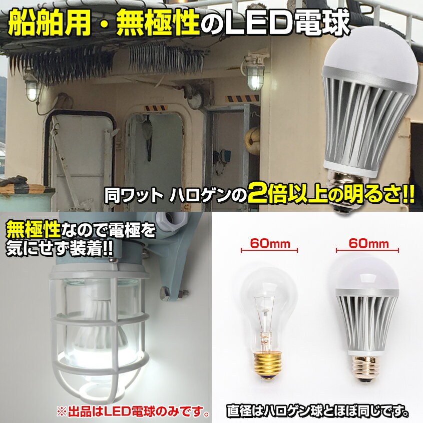 船舶用 LED 電球 E26口金 9w 24v 12v 対応 防水 LED電球 広配光 発光色( ホワイト) 船 漁船 ボート 照明器具 作業灯 集魚灯 ライト マリンランプ交換用 1個