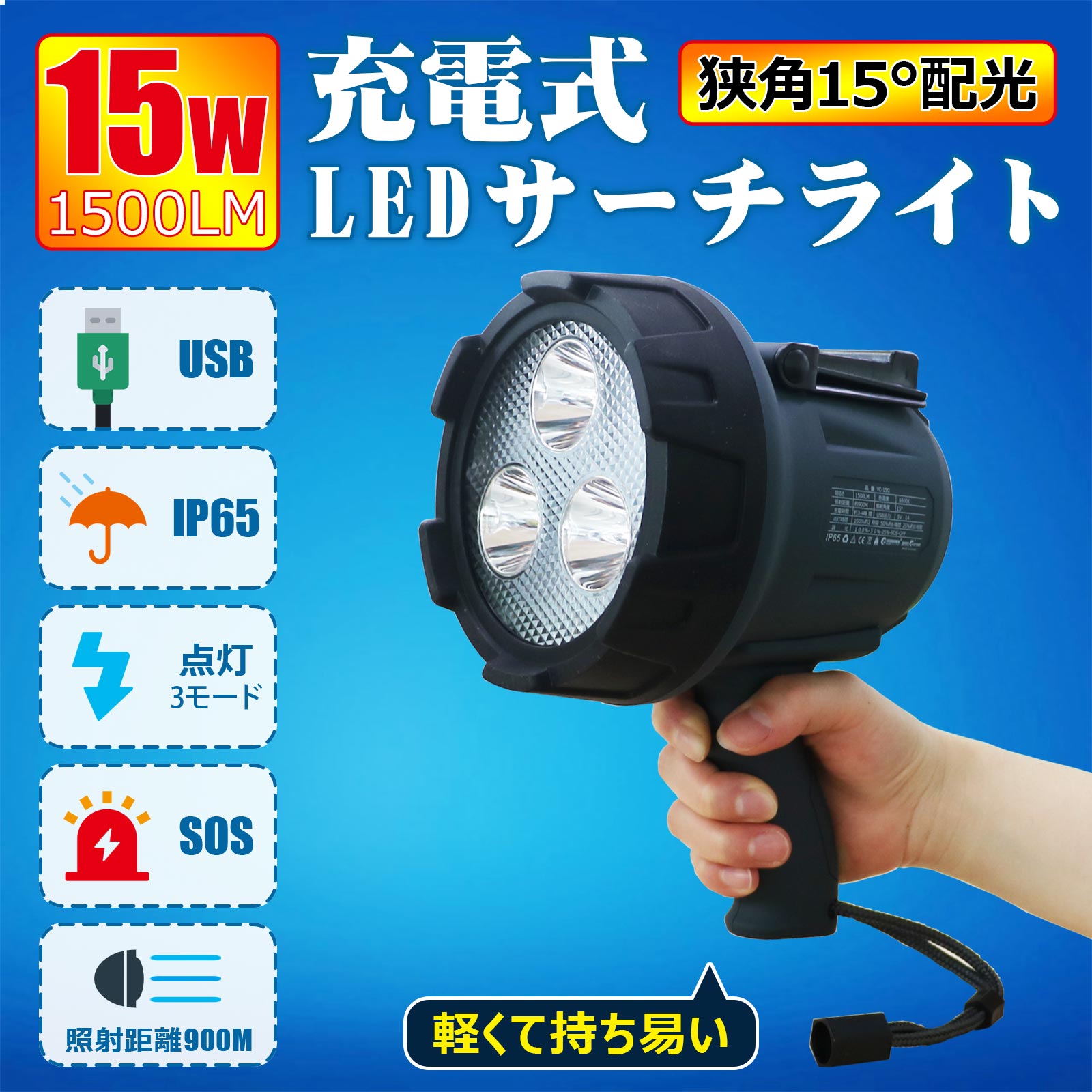 LED 作業灯 充電式 900m遠距離照射 ワークライト サーチライト 15w 1500LM ledライト ランタン 停電対策 地震 スポットライト LED投光器 船 漁船 強力LED ハンディライト 手持ち 海上作業 ウトドア 防水 屋外照明 救援 懐中電灯(YC-15G)