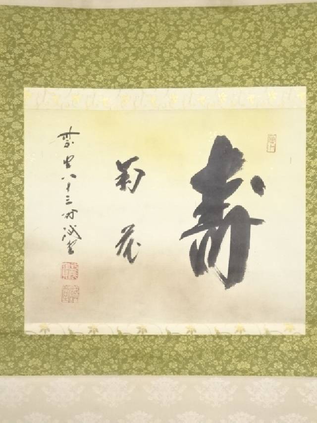 ◆関連キーワード 中古 送料無料 代引手数料無料 おしゃれ かわいい 上品 アンティーク レトロ インテリア 骨董 オブジェ 飾り 普段使い 普段づかい 来客【茶道具・着物】送料無料【書画】大徳寺藤井誡堂筆 「菊花寿」横物 肉筆紙本掛軸(共箱)【送料無料】 ◆ネットショップ圭では多様な商品を取り扱っています お茶会、茶事、茶席、茶の湯で使用するお茶道具を中心に、飲食店、料亭、旅亭、旅館、割烹、小料理屋、カフェ、レストラン、居酒屋、喫茶店、ダイニング、食卓、キッチン、台所、自宅、酒席、酒宴、宴会、バーなど、茶道以外でもご使用いただける食器、酒器、花瓶、掛け軸など多数の道具を取り揃えております。